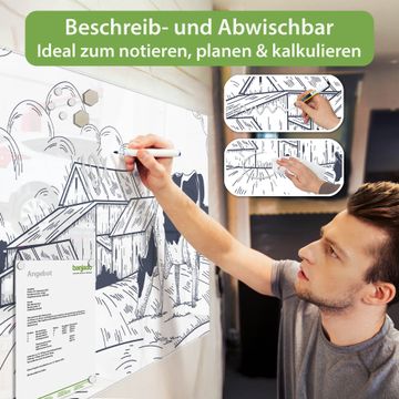 Auf der glatten Glasoberfläche lassen sich Termine, Rezepte oder Notizen ganz einfach mit Kreidestiften festhalten und rückstandslos entfernen. Starke Neodym-Magnete halten Ihre wichtigsten Erinnerungen sicher an Ort und Stelle. So entsteht Ihre ganz persönliche Ideenwand - jeden Tag neu.