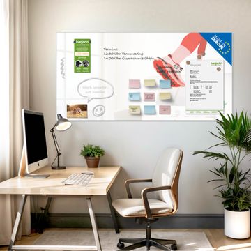 Auf der glatten Glasoberfläche lassen sich Termine, Rezepte oder Notizen ganz einfach mit Kreidestiften festhalten und rückstandslos entfernen. Starke Neodym-Magnete halten Ihre wichtigsten Erinnerungen sicher an Ort und Stelle. So entsteht Ihre ganz persönliche Ideenwand - jeden Tag neu.
