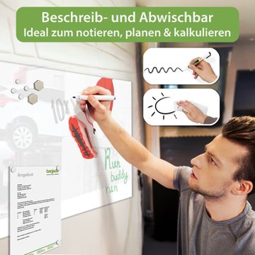 Gefertigt aus gehärtetem Sicherheitsglas mit einer magnetischen Rückwand aus Stahl überzeugt diese Magnettafel durch Stabilität und Langlebigkeit. Die Oberfläche bleibt dauerhaft brillant und pflegeleicht, selbst bei täglicher Nutzung.