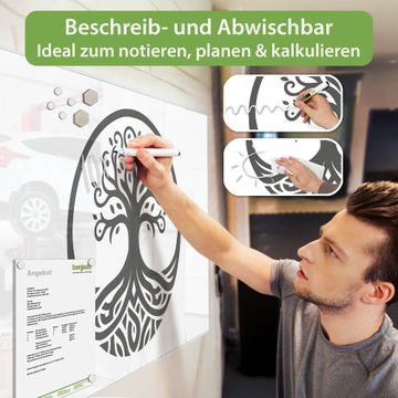 Die banjado Glas Magnettafel mit dem Motiv Motiv Lebensbaum Silhouette 2 verbindet Funktionalität mit Stil. Sie ersetzt das Zettelchaos durch klare Strukturen und bringt dabei eine warme, natürliche Atmosphäre in Ihr Zuhause. Ob im Büro, in der Küche oder im Eingangsbereich - dieses Design-Board zieht Blicke an und sorgt für Ordnung mit Charakter.