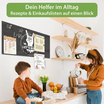 Auf der glatten Glasoberfläche lassen sich Termine, Rezepte oder Notizen ganz einfach mit Kreidestiften festhalten und rückstandslos entfernen. Starke Neodym-Magnete halten Ihre wichtigsten Erinnerungen sicher an Ort und Stelle. So entsteht Ihre ganz persönliche Ideenwand - jeden Tag neu.