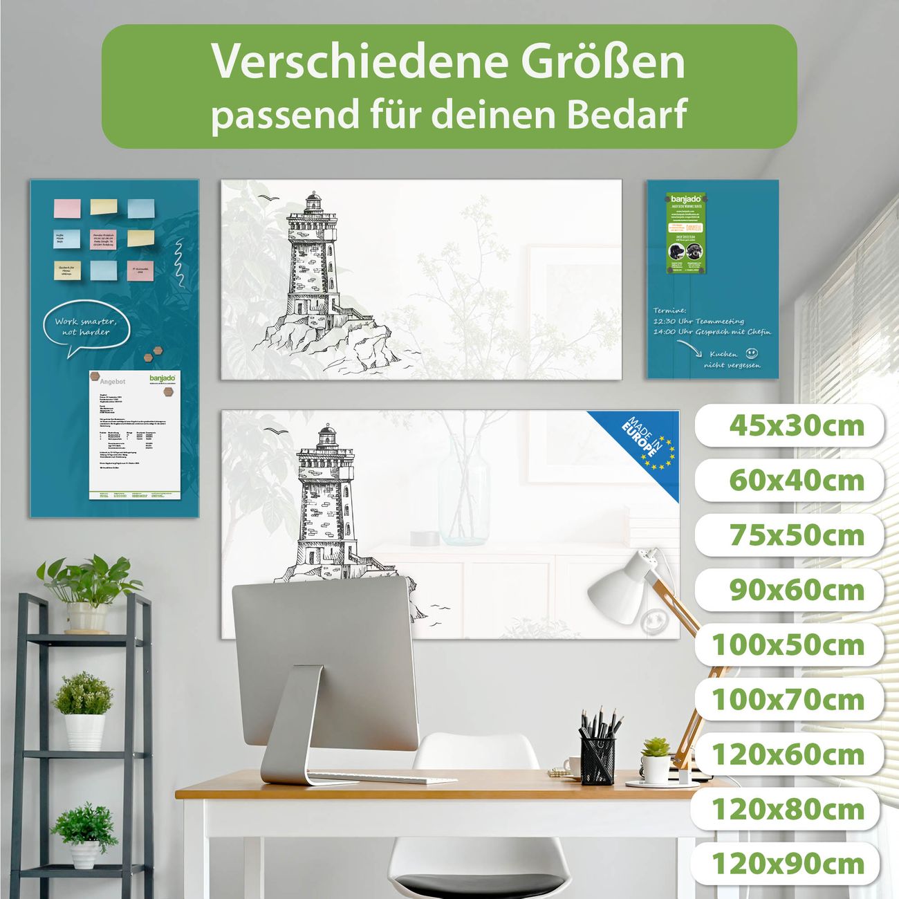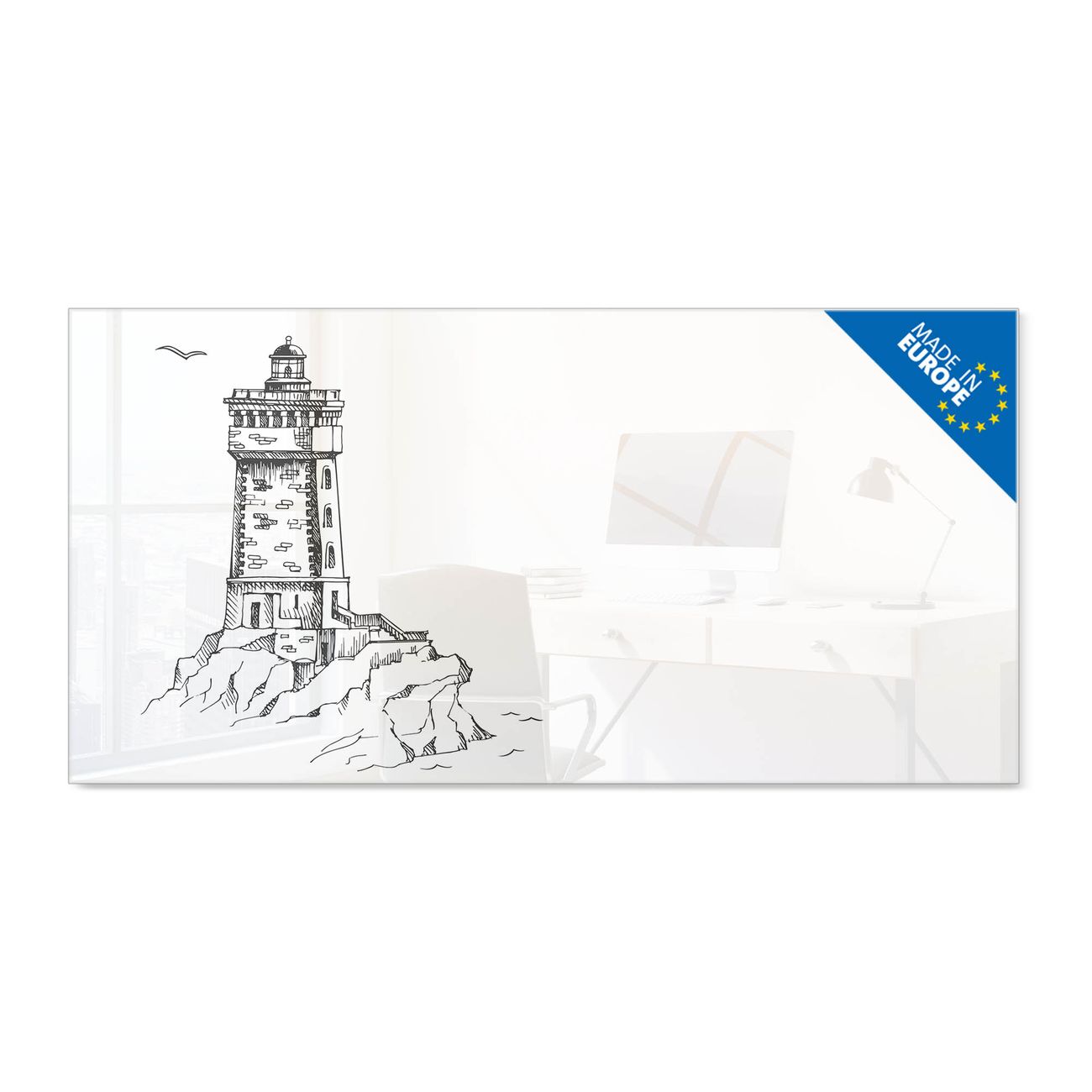 Material: 4mm Sicherheitsglas mit Metallrückwand Eigenschaften: beschreibbar, magnetisch, kratzfest Maße: 100x50x0,6cm, 7,50kg schwer Motiv Nummer 13078 Leuchtturm 8 Zubehör: inklusive 4 Neodym-Magnete