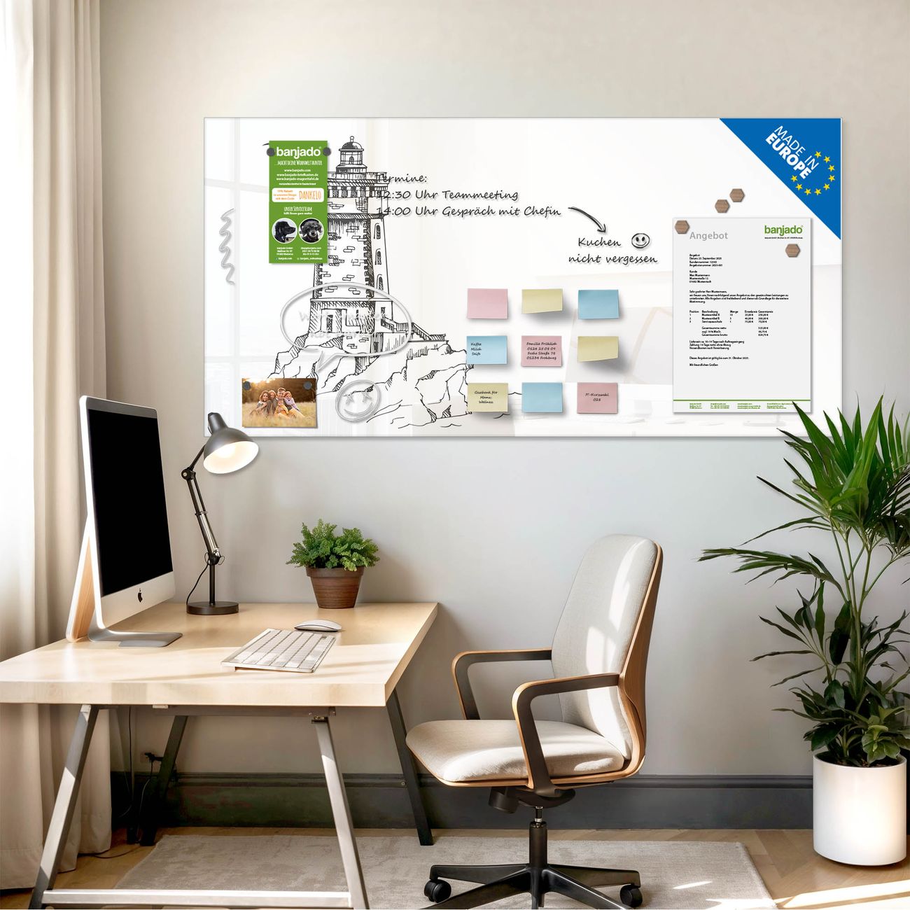 Jede Glas Magnettafel wird in unserer Werkstatt von Hand gefertigt und sorgfältig geprüft. So erhalten Sie ein echtes Qualitätsprodukt, das Funktion und Ästhetik perfekt vereint.?? Warum banjado?