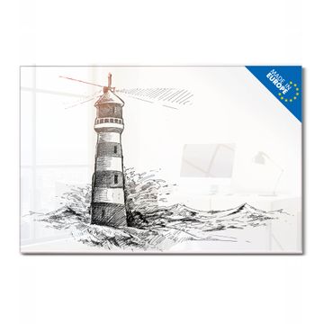 Glas Magnettafel im Querformat Motiv Leuchtturm in der Brandung