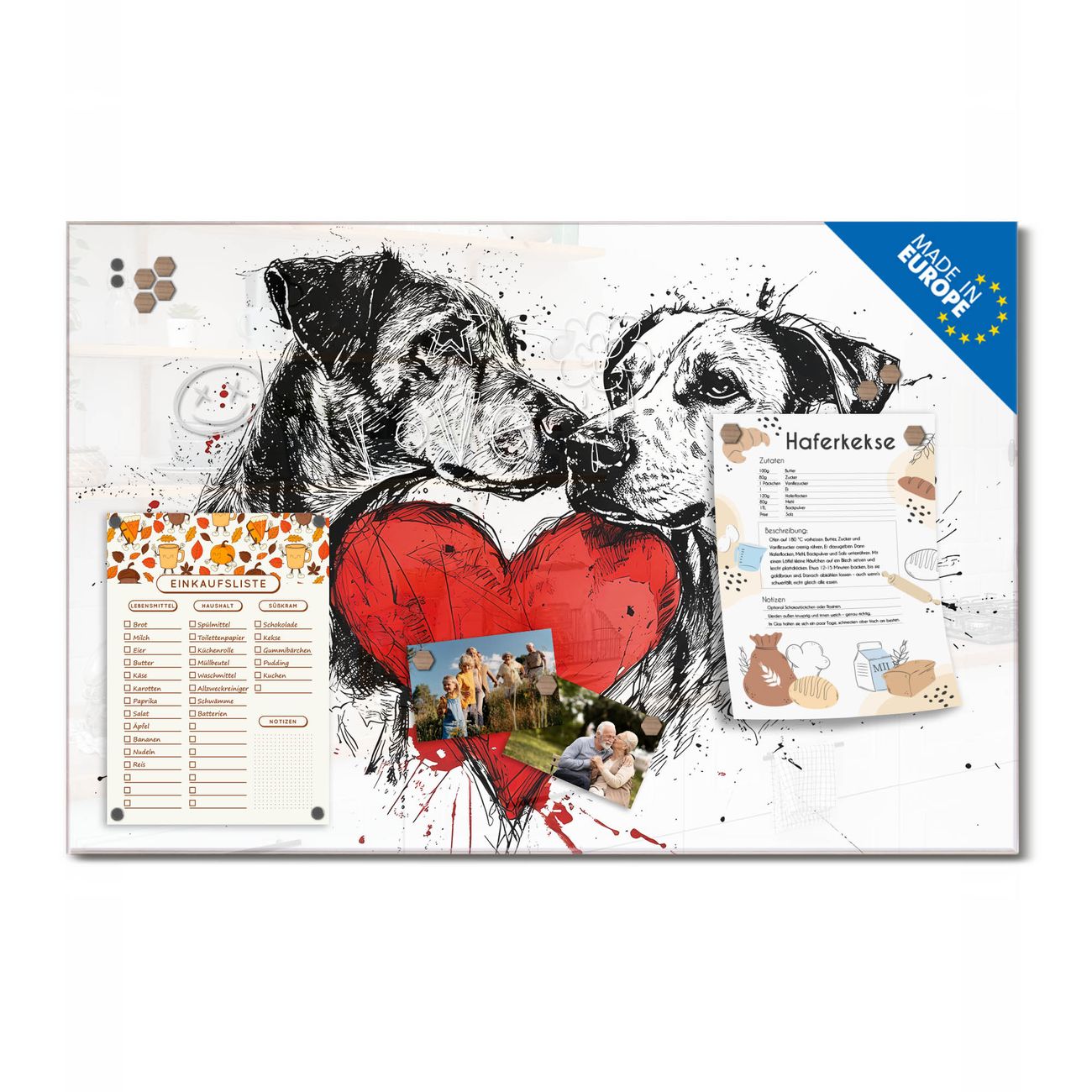 Glas Magnettafel im Querformat Motiv Liebende Hunde 2