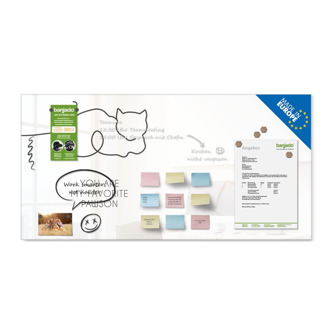 Jede Glas Magnettafel wird in unserer Werkstatt von Hand gefertigt und sorgfältig geprüft. So erhalten Sie ein echtes Qualitätsprodukt, das Funktion und Ästhetik perfekt vereint.?? Warum banjado?