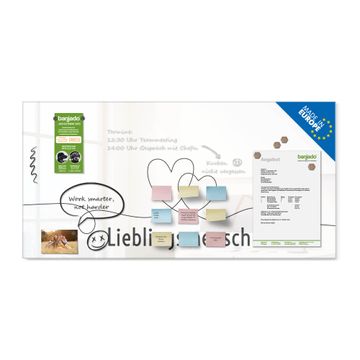 Die banjado Glas Magnettafel mit dem Motiv Motiv Lieblingsmensch Herz Lineart 2 verbindet Funktionalität mit Stil. Sie ersetzt das Zettelchaos durch klare Strukturen und bringt dabei eine warme, natürliche Atmosphäre in Ihr Zuhause. Ob im Büro, in der Küche oder im Eingangsbereich - dieses Design-Board zieht Blicke an und sorgt für Ordnung mit Charakter.