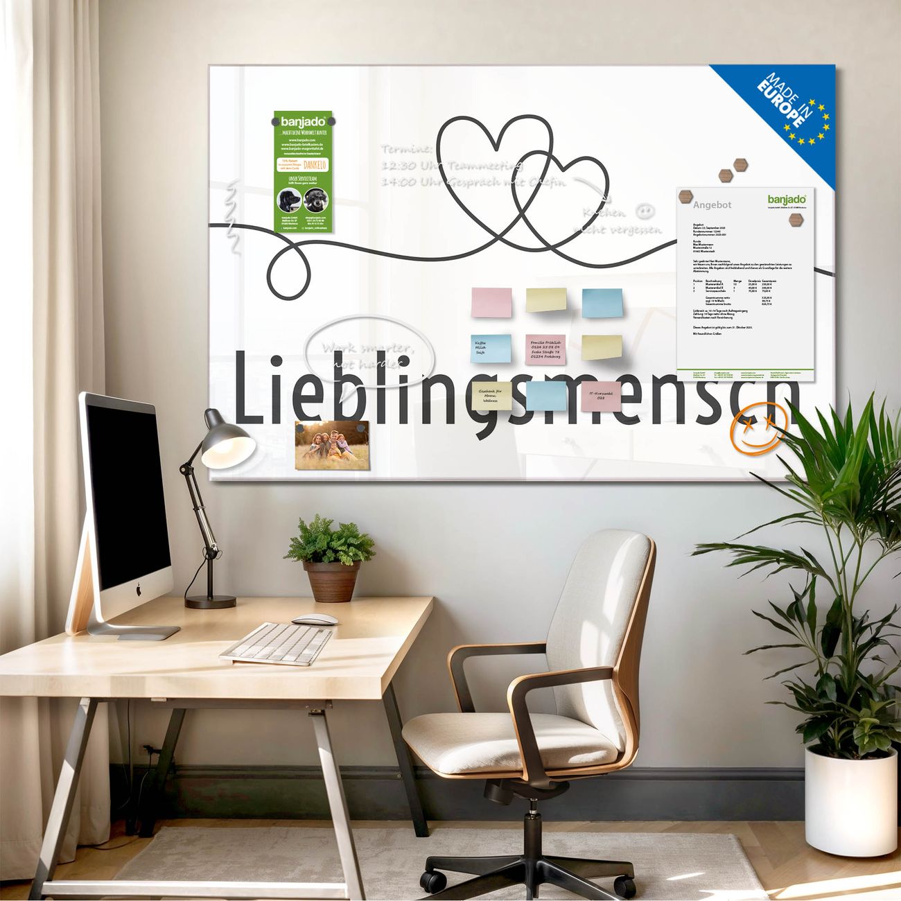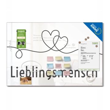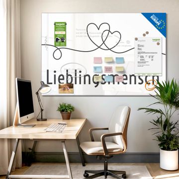 Die banjado Glas Magnettafel mit dem Motiv Motiv Lieblingsmensch Herz Lineart 2 verbindet Funktionalität mit Stil. Sie ersetzt das Zettelchaos durch klare Strukturen und bringt dabei eine warme, natürliche Atmosphäre in Ihr Zuhause. Ob im Büro, in der Küche oder im Eingangsbereich - dieses Design-Board zieht Blicke an und sorgt für Ordnung mit Charakter.