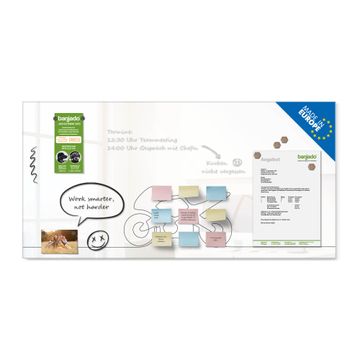 Auf der glatten Glasoberfläche lassen sich Termine, Rezepte oder Notizen ganz einfach mit Kreidestiften festhalten und rückstandslos entfernen. Starke Neodym-Magnete halten Ihre wichtigsten Erinnerungen sicher an Ort und Stelle. So entsteht Ihre ganz persönliche Ideenwand - jeden Tag neu.