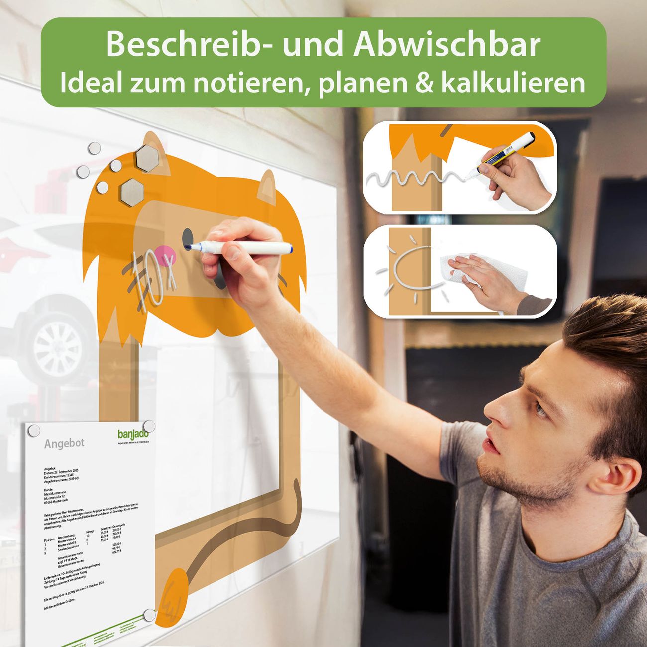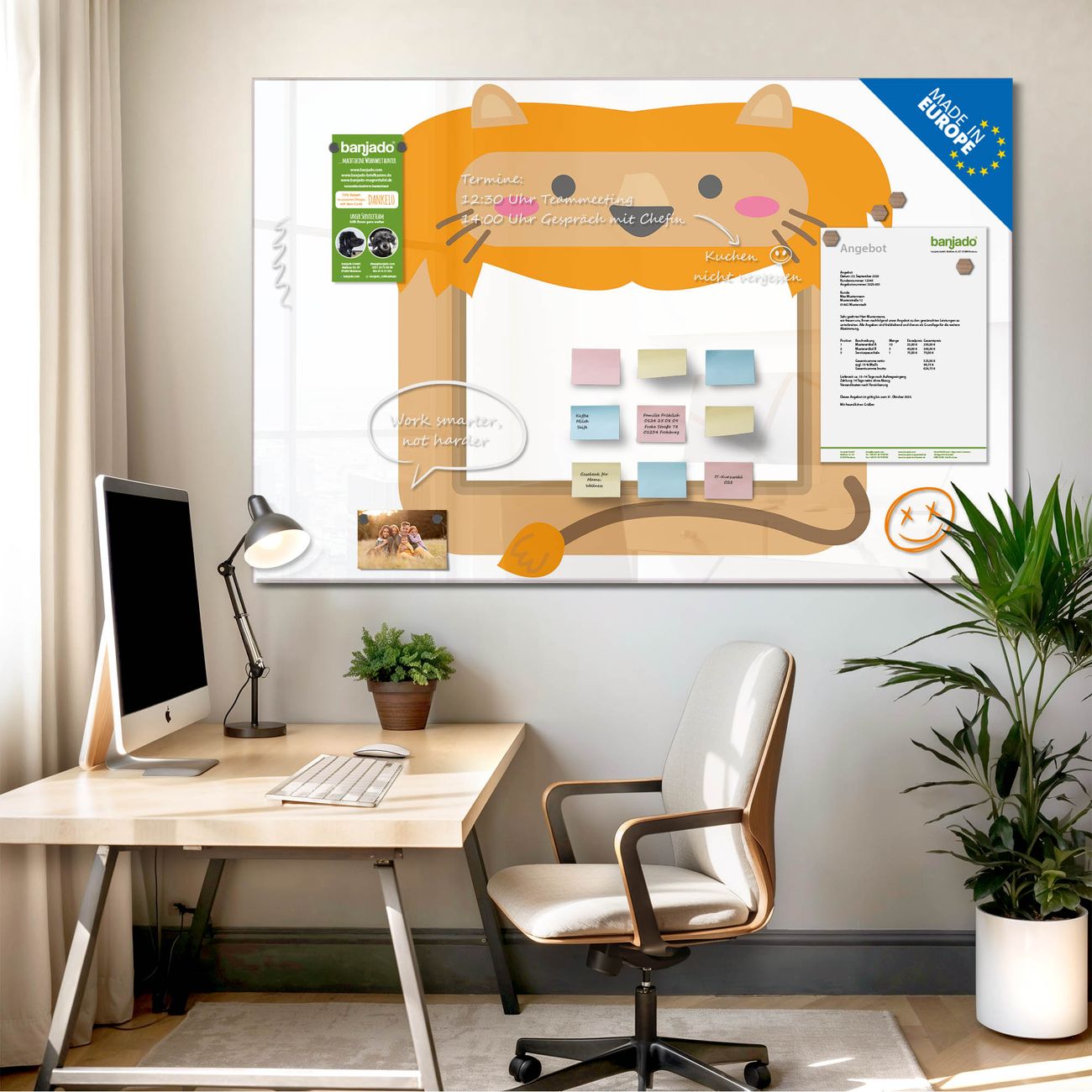 Die banjado Glas Magnettafel mit dem Motiv Motiv Löwenbilderrahmen verbindet Funktionalität mit Stil. Sie ersetzt das Zettelchaos durch klare Strukturen und bringt dabei eine warme, natürliche Atmosphäre in Ihr Zuhause. Ob im Büro, in der Küche oder im Eingangsbereich - dieses Design-Board zieht Blicke an und sorgt für Ordnung mit Charakter.