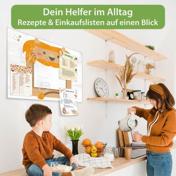 Auf der glatten Glasoberfläche lassen sich Termine, Rezepte oder Notizen ganz einfach mit Kreidestiften festhalten und rückstandslos entfernen. Starke Neodym-Magnete halten Ihre wichtigsten Erinnerungen sicher an Ort und Stelle. So entsteht Ihre ganz persönliche Ideenwand - jeden Tag neu.