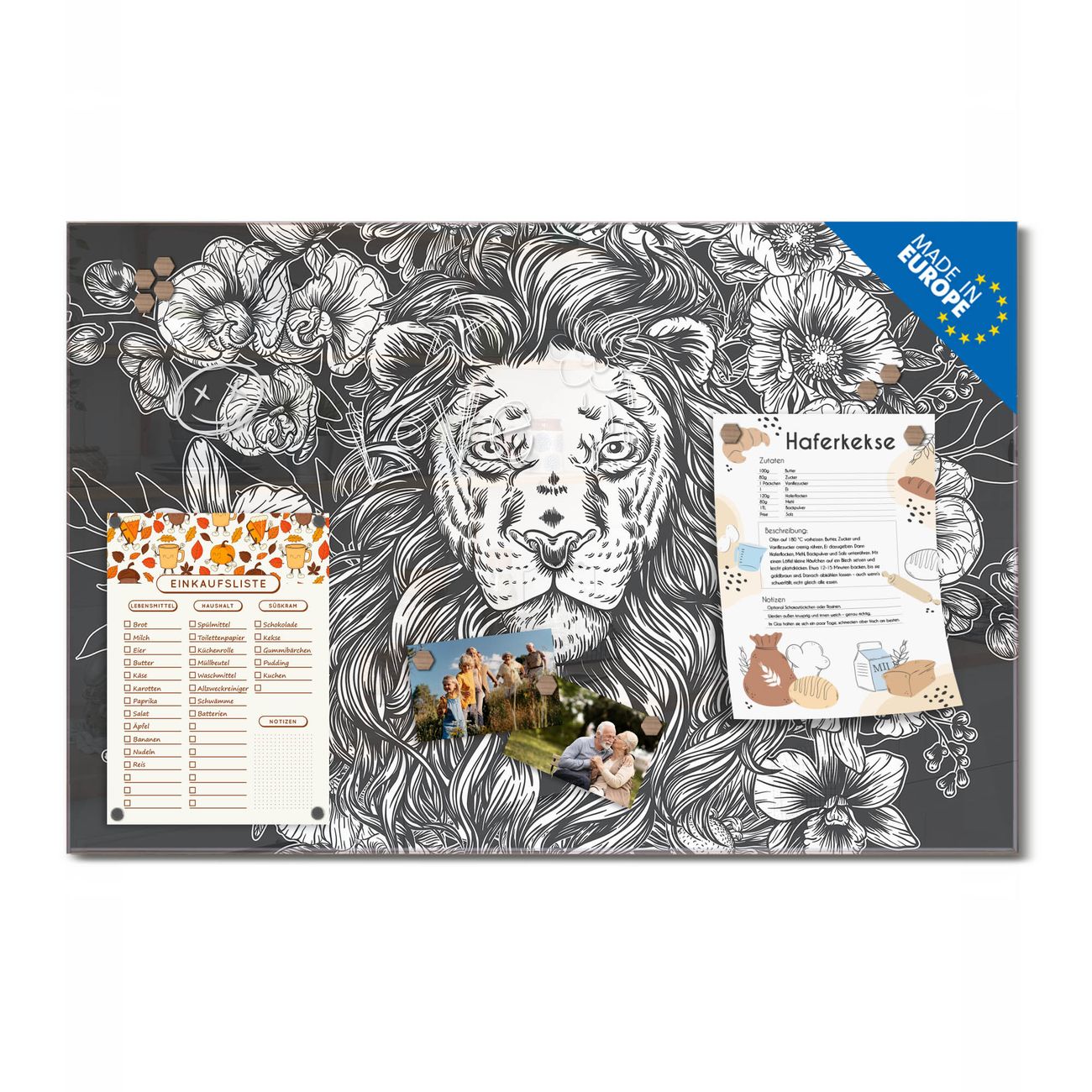 Material: 4mm Sicherheitsglas mit Metallrückwand Eigenschaften: beschreibbar, magnetisch, kratzfest Maße: 75x50x0,6cm, 5,63kg schwer Motiv Nummer 13470 Löwenblütenpracht Zubehör: inklusive 4 Neodym-Magnete