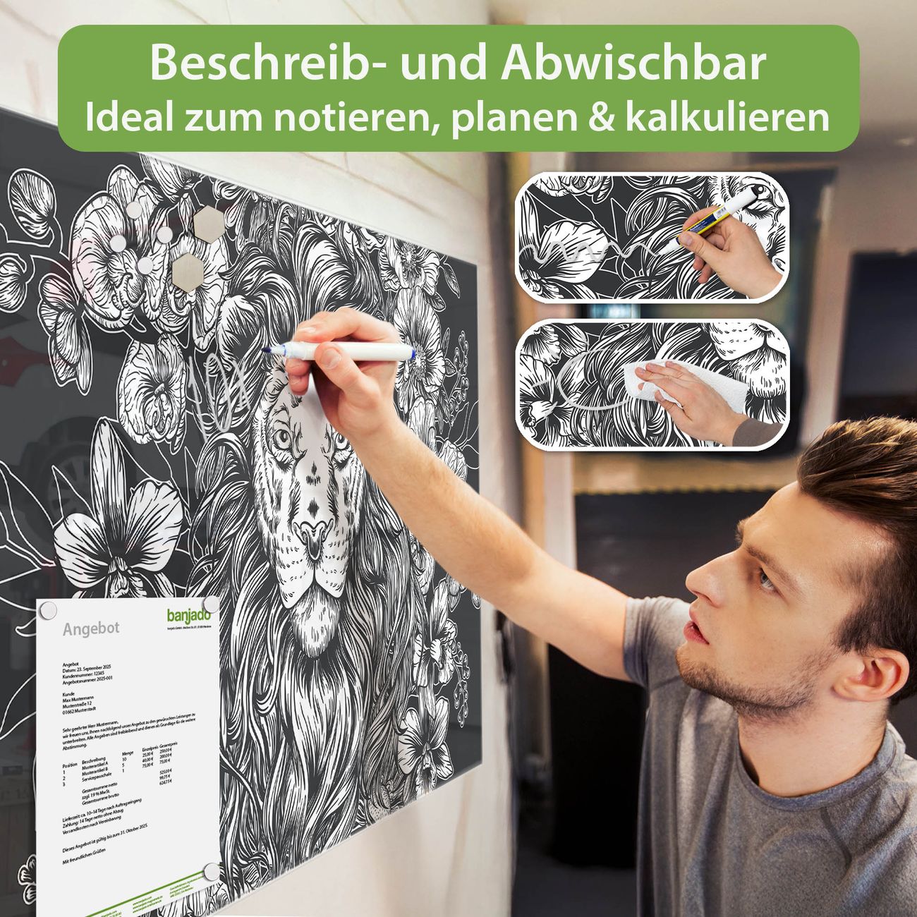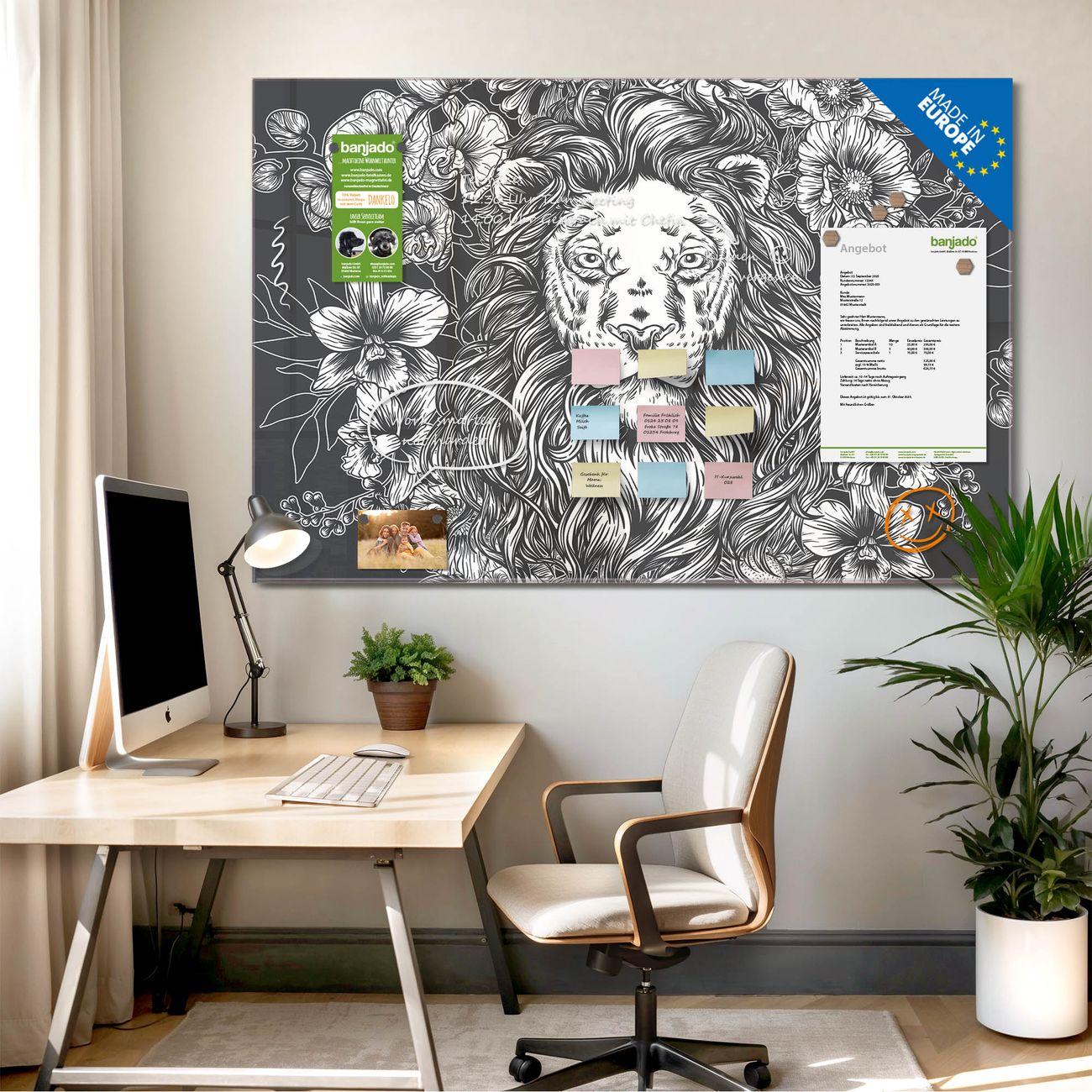 Die banjado Glas Magnettafel mit dem Motiv Motiv Löwenblütenpracht verbindet Funktionalität mit Stil. Sie ersetzt das Zettelchaos durch klare Strukturen und bringt dabei eine warme, natürliche Atmosphäre in Ihr Zuhause. Ob im Büro, in der Küche oder im Eingangsbereich - dieses Design-Board zieht Blicke an und sorgt für Ordnung mit Charakter.