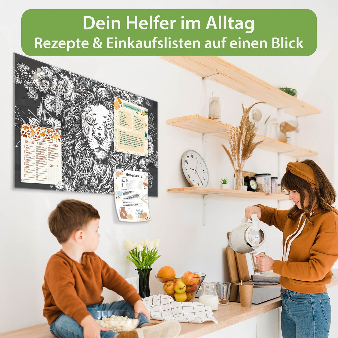 Ein Stück Design, das Ihren Alltag organisiert. Schreiben, heften, inspirieren - alles an einem Ort. Qualität, die man spürt. Montage leicht gemacht. Handwerk mit Herz - veredelt in Sachsen. Einzigartiges Design mit Motiv Motiv Löwenblütenpracht Beschreibbare Glasoberfläche, leicht zu reinigen Starke Magnetkraft durch Stahlrückwand Inklusive 4 Neodym-Magneten Flexible Montageoptionen Handveredelt in Sachsen - Qualität, die bleibt