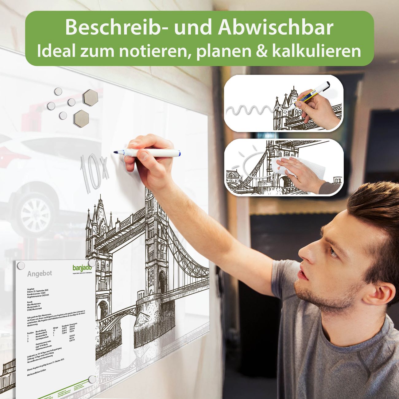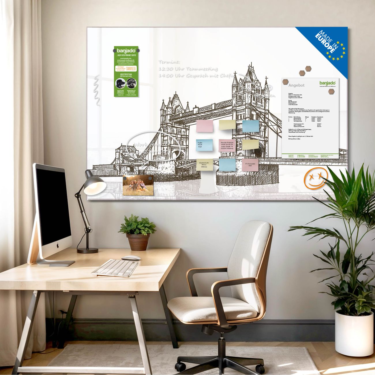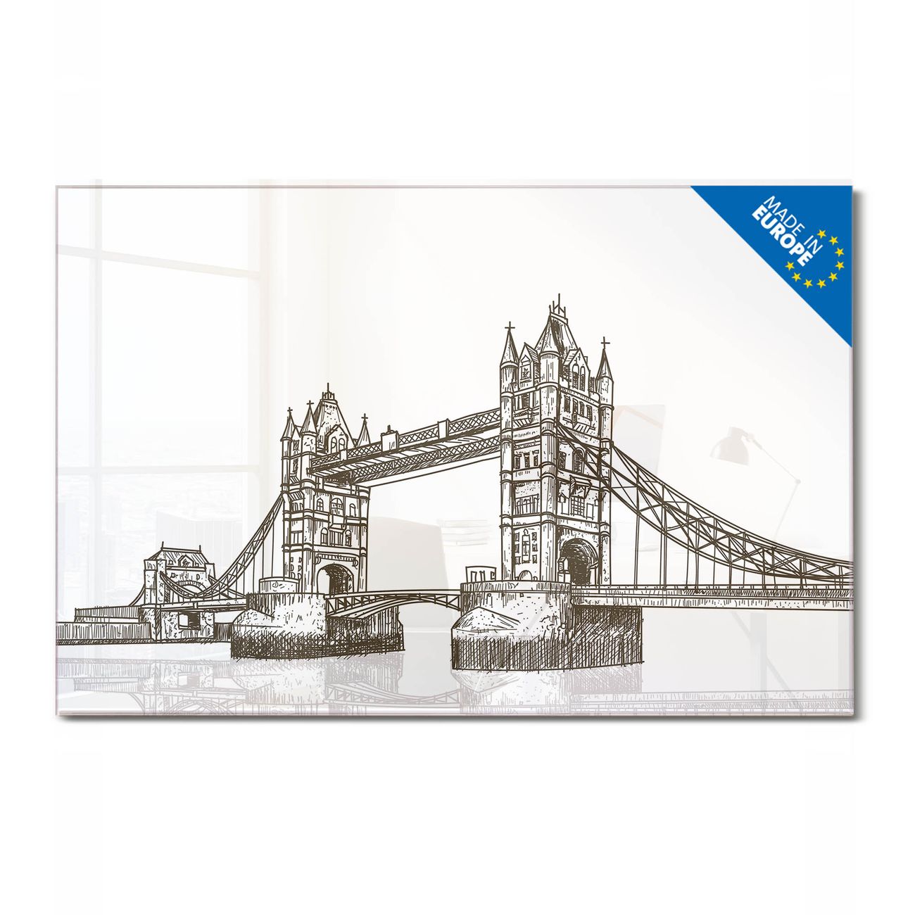 Glas Magnettafel im Querformat Motiv London Brücke Illustration