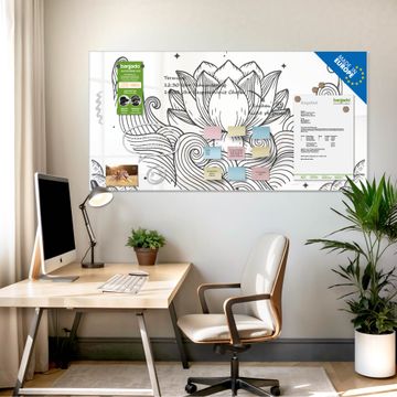 Die banjado Glas Magnettafel mit dem Motiv Motiv Lotus und Mondphasen 2 verbindet Funktionalität mit Stil. Sie ersetzt das Zettelchaos durch klare Strukturen und bringt dabei eine warme, natürliche Atmosphäre in Ihr Zuhause. Ob im Büro, in der Küche oder im Eingangsbereich - dieses Design-Board zieht Blicke an und sorgt für Ordnung mit Charakter.