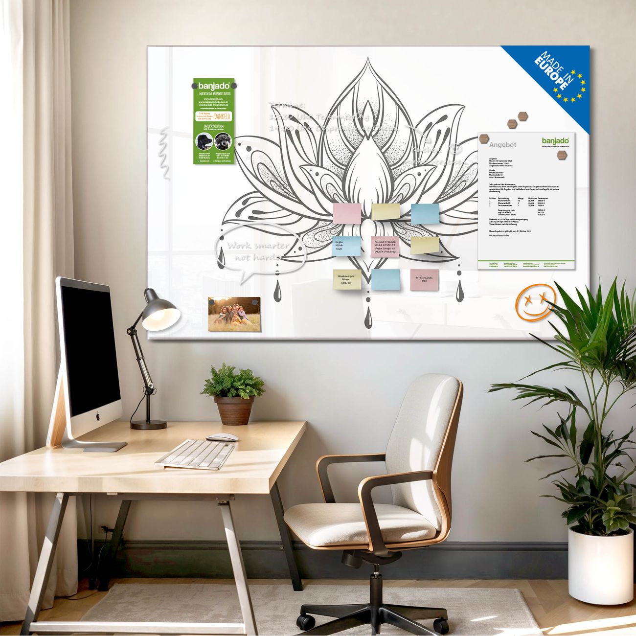 Die banjado Glas Magnettafel mit dem Motiv Motiv Lotusblüte 6 verbindet Funktionalität mit Stil. Sie ersetzt das Zettelchaos durch klare Strukturen und bringt dabei eine warme, natürliche Atmosphäre in Ihr Zuhause. Ob im Büro, in der Küche oder im Eingangsbereich - dieses Design-Board zieht Blicke an und sorgt für Ordnung mit Charakter.