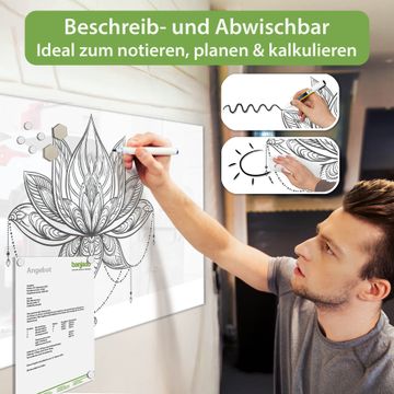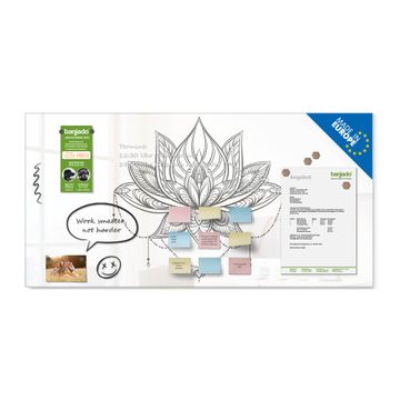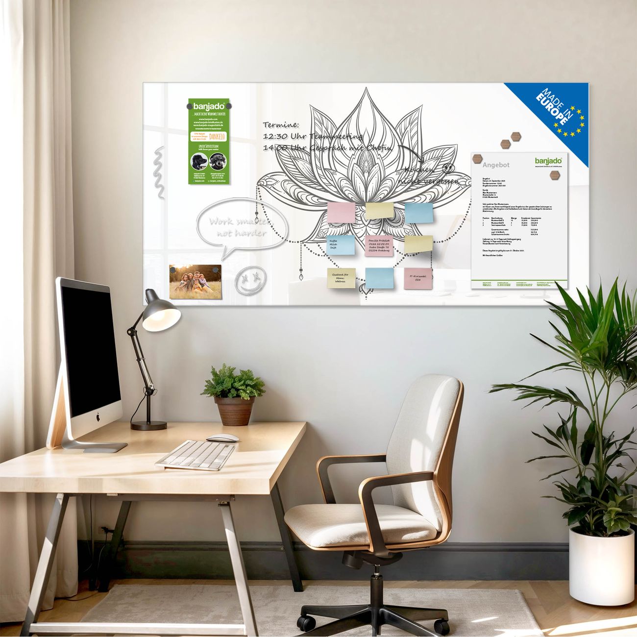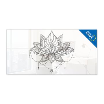 Material: 4mm Sicherheitsglas mit Metallrückwand Eigenschaften: beschreibbar, magnetisch, kratzfest Maße: 100x50x0,6cm, 7,50kg schwer Motiv Nummer 13062 Lotusblüte 7 Zubehör: inklusive 4 Neodym-Magnete