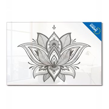 Material: 4mm Sicherheitsglas mit Metallrückwand Eigenschaften: beschreibbar, magnetisch, kratzfest Maße: 90x60x0,6cm, 8,10kg schwer Motiv Nummer 13064 Lotusblüte 9 Zubehör: inklusive 4 Neodym-Magnete