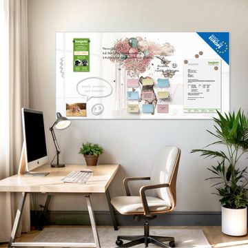 Auf der glatten Glasoberfläche lassen sich Termine, Rezepte oder Notizen ganz einfach mit Kreidestiften festhalten und rückstandslos entfernen. Starke Neodym-Magnete halten Ihre wichtigsten Erinnerungen sicher an Ort und Stelle. So entsteht Ihre ganz persönliche Ideenwand - jeden Tag neu.