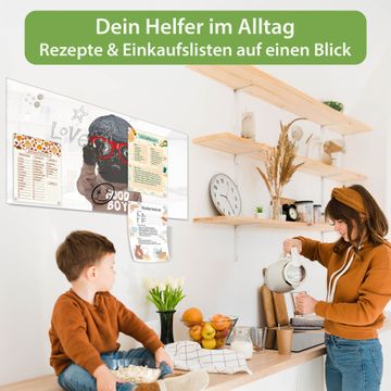 Auf der glatten Glasoberfläche lassen sich Termine, Rezepte oder Notizen ganz einfach mit Kreidestiften festhalten und rückstandslos entfernen. Starke Neodym-Magnete halten Ihre wichtigsten Erinnerungen sicher an Ort und Stelle. So entsteht Ihre ganz persönliche Ideenwand - jeden Tag neu.