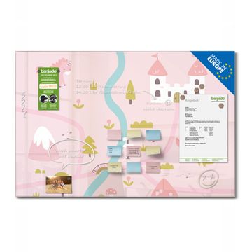 Material: 4mm Sicherheitsglas mit Metallrückwand Eigenschaften: beschreibbar, magnetisch, kratzfest Maße: 120x80x0,6cm, 14,40kg schwer Motiv Nummer 13016 Märchendorf 2 Zubehör: inklusive 4 Neodym-Magnete