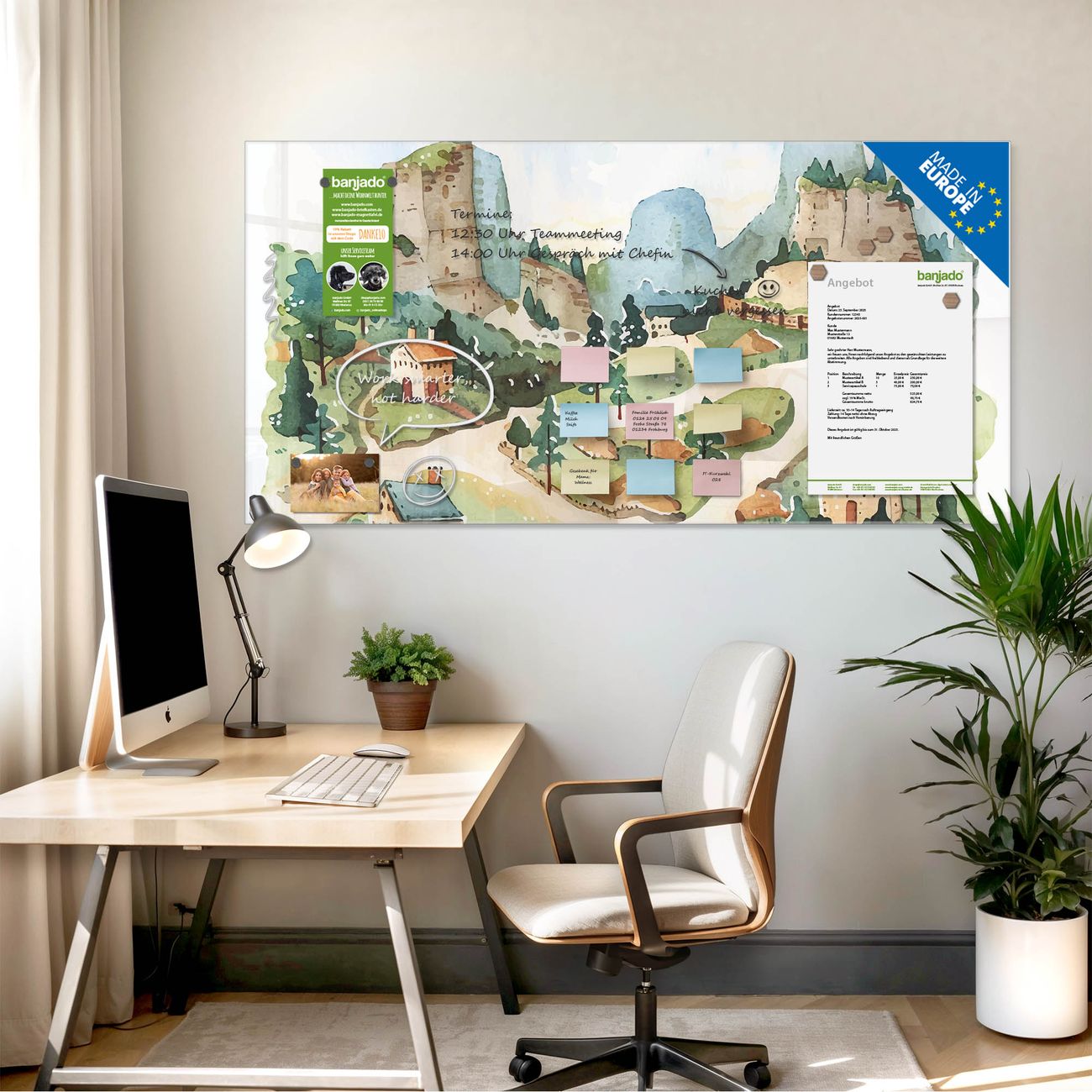 Die banjado Glas Magnettafel mit dem Motiv Motiv Märchendorf 3 verbindet Funktionalität mit Stil. Sie ersetzt das Zettelchaos durch klare Strukturen und bringt dabei eine warme, natürliche Atmosphäre in Ihr Zuhause. Ob im Büro, in der Küche oder im Eingangsbereich - dieses Design-Board zieht Blicke an und sorgt für Ordnung mit Charakter.
