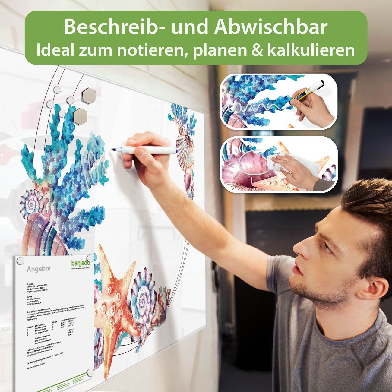 Jede Glas Magnettafel wird in unserer Werkstatt von Hand gefertigt und sorgfältig geprüft. So erhalten Sie ein echtes Qualitätsprodukt, das Funktion und Ästhetik perfekt vereint.?? Warum banjado?