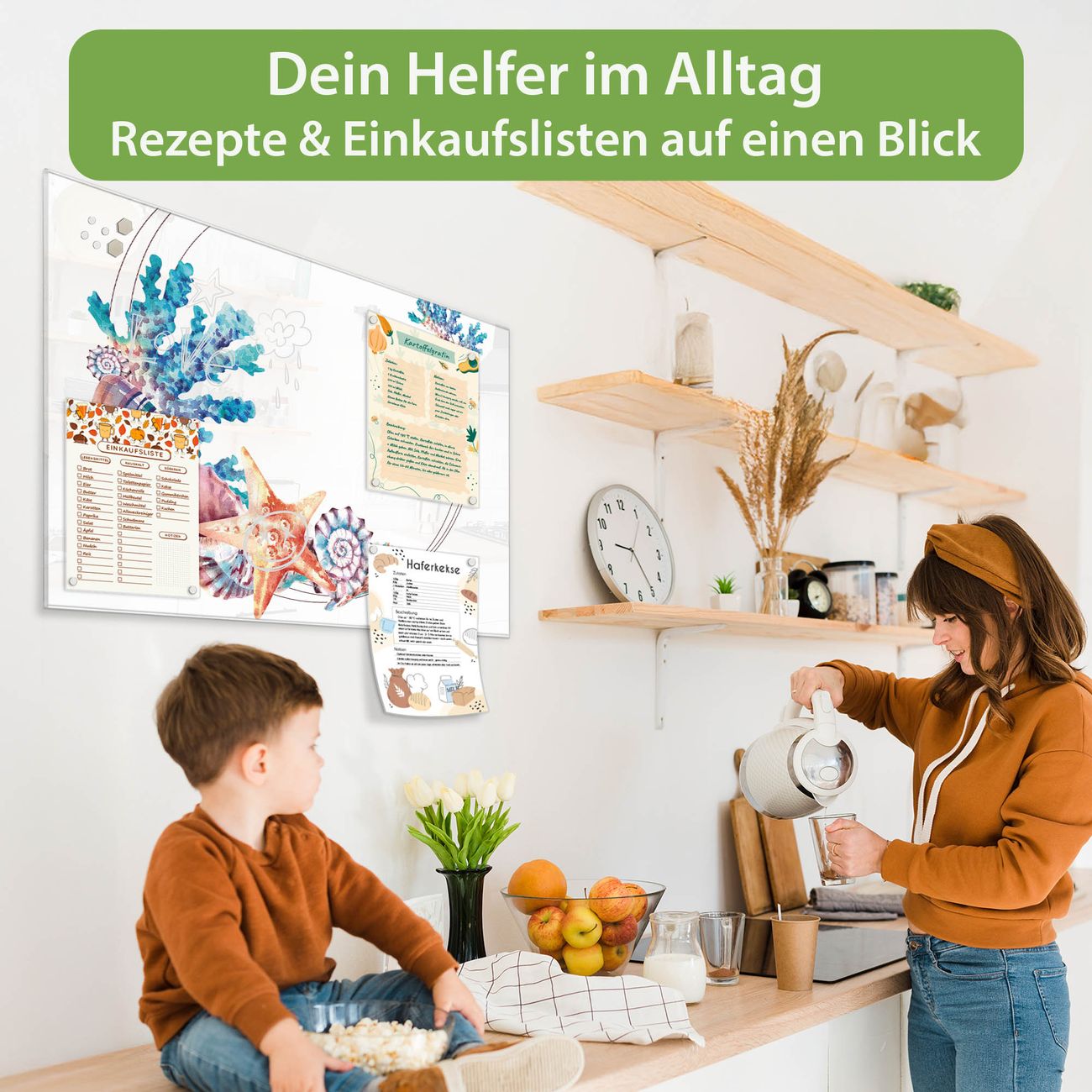 Ein Stück Design, das Ihren Alltag organisiert. Schreiben, heften, inspirieren - alles an einem Ort. Qualität, die man spürt. Montage leicht gemacht. Handwerk mit Herz - veredelt in Sachsen. Einzigartiges Design mit Motiv Motiv Maritime Eleganz Beschreibbare Glasoberfläche, leicht zu reinigen Starke Magnetkraft durch Stahlrückwand Inklusive 4 Neodym-Magneten Flexible Montageoptionen Handveredelt in Sachsen - Qualität, die bleibt