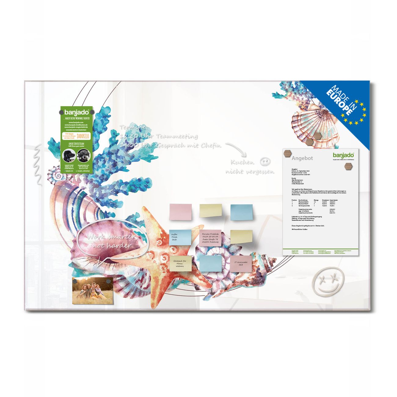 Die banjado Glas Magnettafel mit dem Motiv Motiv Maritime Eleganz verbindet Funktionalität mit Stil. Sie ersetzt das Zettelchaos durch klare Strukturen und bringt dabei eine warme, natürliche Atmosphäre in Ihr Zuhause. Ob im Büro, in der Küche oder im Eingangsbereich - dieses Design-Board zieht Blicke an und sorgt für Ordnung mit Charakter.