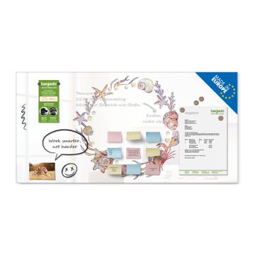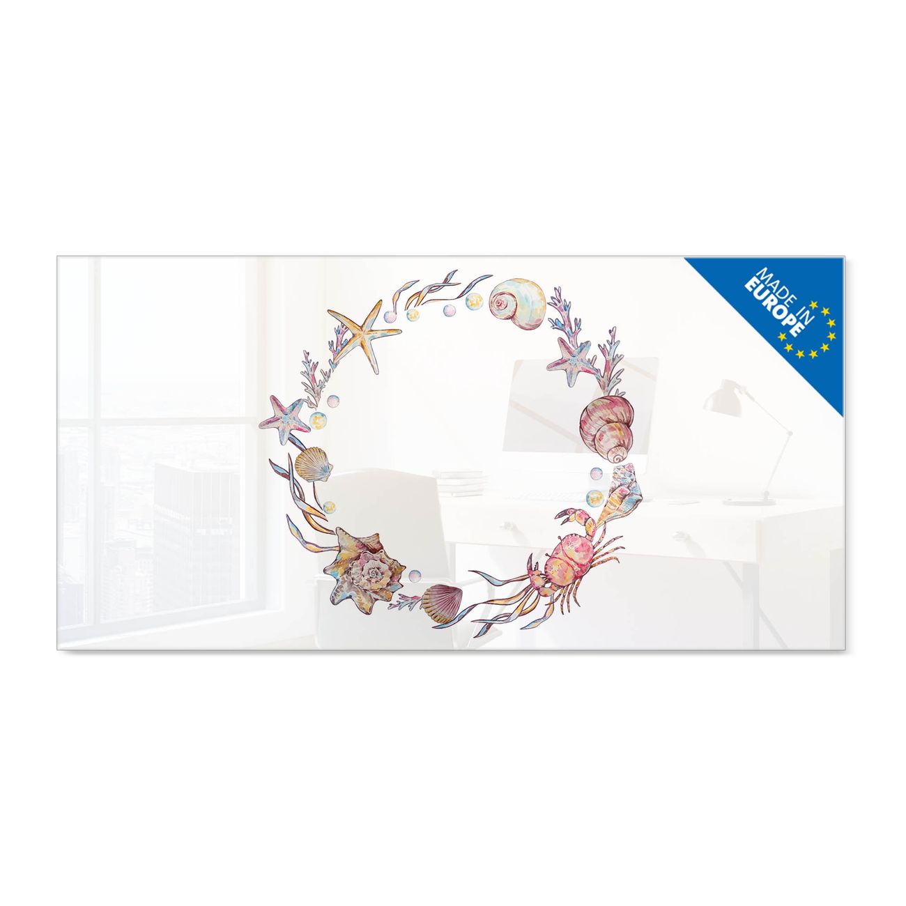 Material: 4mm Sicherheitsglas mit Metallrückwand Eigenschaften: beschreibbar, magnetisch, kratzfest Maße: 100x50x0,6cm, 7,50kg schwer Motiv Nummer 13512 Maritime Kranz Zubehör: inklusive 4 Neodym-Magnete