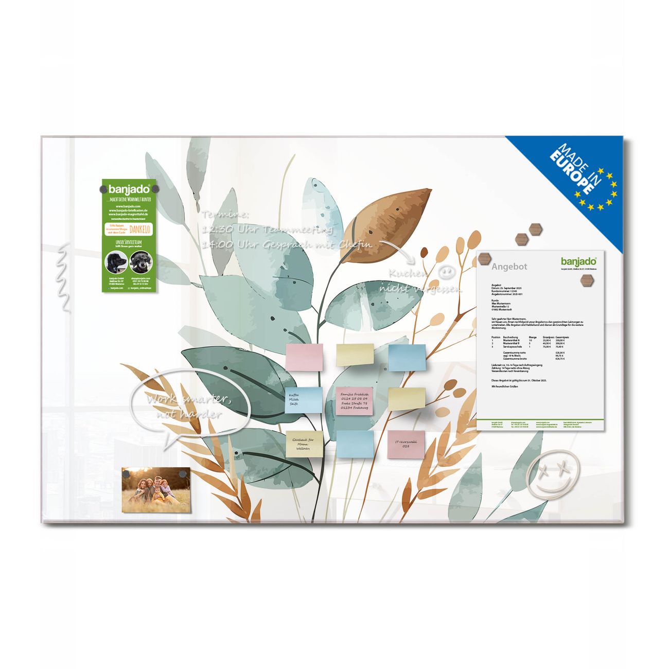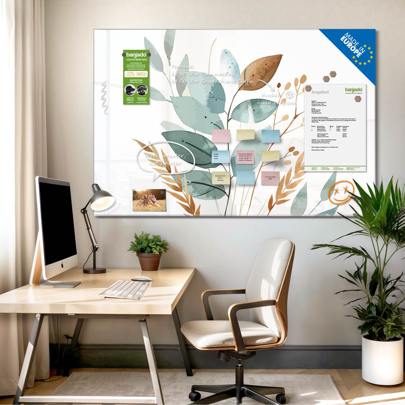 Glas Magnettafel im Querformat Motiv Minimalistische Blätter