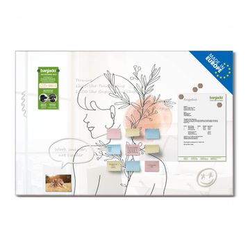 Die banjado Glas Magnettafel mit dem Motiv Motiv Minimalistische Linienzeichnung verbindet Funktionalität mit Stil. Sie ersetzt das Zettelchaos durch klare Strukturen und bringt dabei eine warme, natürliche Atmosphäre in Ihr Zuhause. Ob im Büro, in der Küche oder im Eingangsbereich - dieses Design-Board zieht Blicke an und sorgt für Ordnung mit Charakter.