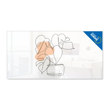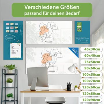 Material: 4mm Sicherheitsglas mit Metallrückwand Eigenschaften: beschreibbar, magnetisch, kratzfest Maße: 120x60x0,6cm, 10,80kg schwer Motiv Nummer 13293 Minimalistische Pflanzenlinie Zubehör: inklusive 4 Neodym-Magnete