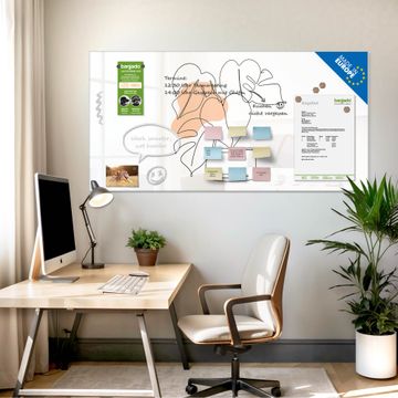 Auf der glatten Glasoberfläche lassen sich Termine, Rezepte oder Notizen ganz einfach mit Kreidestiften festhalten und rückstandslos entfernen. Starke Neodym-Magnete halten Ihre wichtigsten Erinnerungen sicher an Ort und Stelle. So entsteht Ihre ganz persönliche Ideenwand - jeden Tag neu.