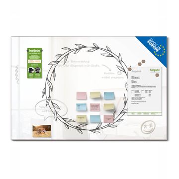 Die banjado Glas Magnettafel mit dem Motiv Motiv Minimalistischer Blätterkranz verbindet Funktionalität mit Stil. Sie ersetzt das Zettelchaos durch klare Strukturen und bringt dabei eine warme, natürliche Atmosphäre in Ihr Zuhause. Ob im Büro, in der Küche oder im Eingangsbereich - dieses Design-Board zieht Blicke an und sorgt für Ordnung mit Charakter.