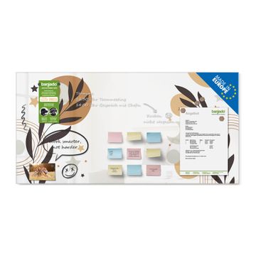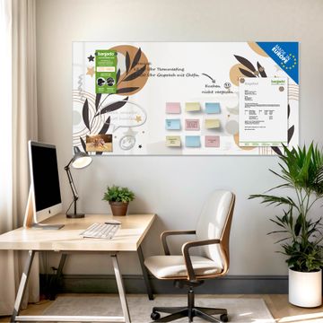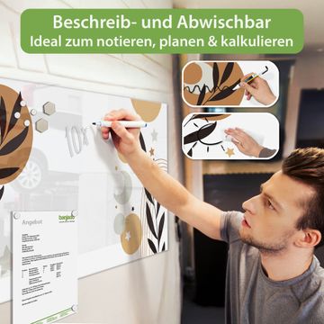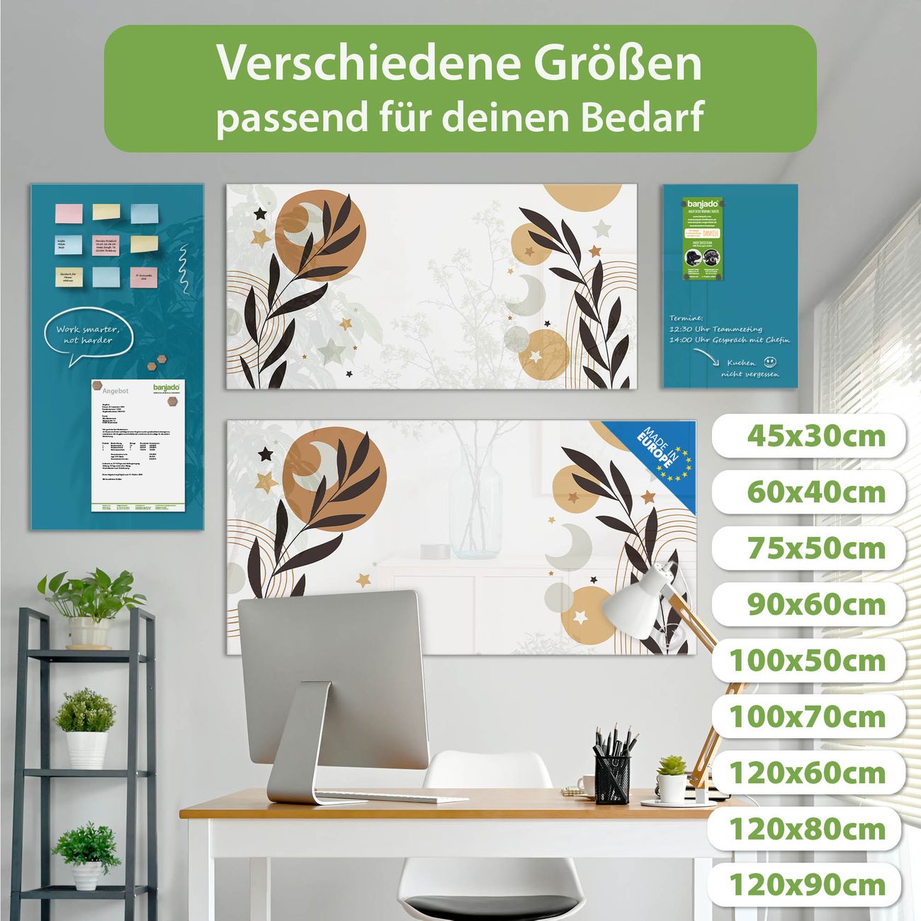 Die banjado Glas Magnettafel mit dem Motiv Motiv Mond und Blätter Komposition verbindet Funktionalität mit Stil. Sie ersetzt das Zettelchaos durch klare Strukturen und bringt dabei eine warme, natürliche Atmosphäre in Ihr Zuhause. Ob im Büro, in der Küche oder im Eingangsbereich - dieses Design-Board zieht Blicke an und sorgt für Ordnung mit Charakter.