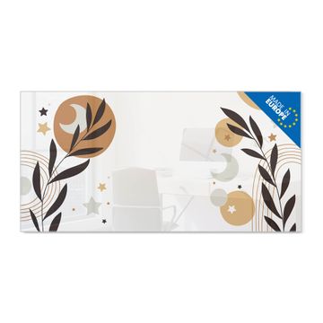 Material: 4mm Sicherheitsglas mit Metallrückwand Eigenschaften: beschreibbar, magnetisch, kratzfest Maße: 100x50x0,6cm, 7,50kg schwer Motiv Nummer 13164 Mond und Blätter Komposition Zubehör: inklusive 4 Neodym-Magnete