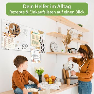 Auf der glatten Glasoberfläche lassen sich Termine, Rezepte oder Notizen ganz einfach mit Kreidestiften festhalten und rückstandslos entfernen. Starke Neodym-Magnete halten Ihre wichtigsten Erinnerungen sicher an Ort und Stelle. So entsteht Ihre ganz persönliche Ideenwand - jeden Tag neu.