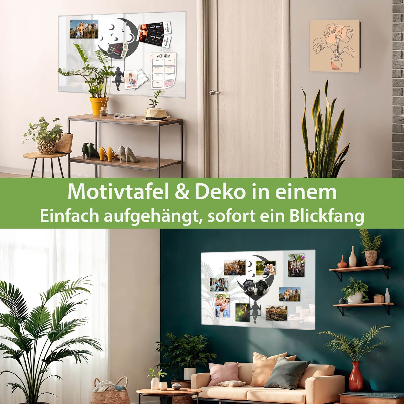 Die banjado Glas Magnettafel mit dem Motiv Motiv Mondschaukel verbindet Funktionalität mit Stil. Sie ersetzt das Zettelchaos durch klare Strukturen und bringt dabei eine warme, natürliche Atmosphäre in Ihr Zuhause. Ob im Büro, in der Küche oder im Eingangsbereich - dieses Design-Board zieht Blicke an und sorgt für Ordnung mit Charakter.