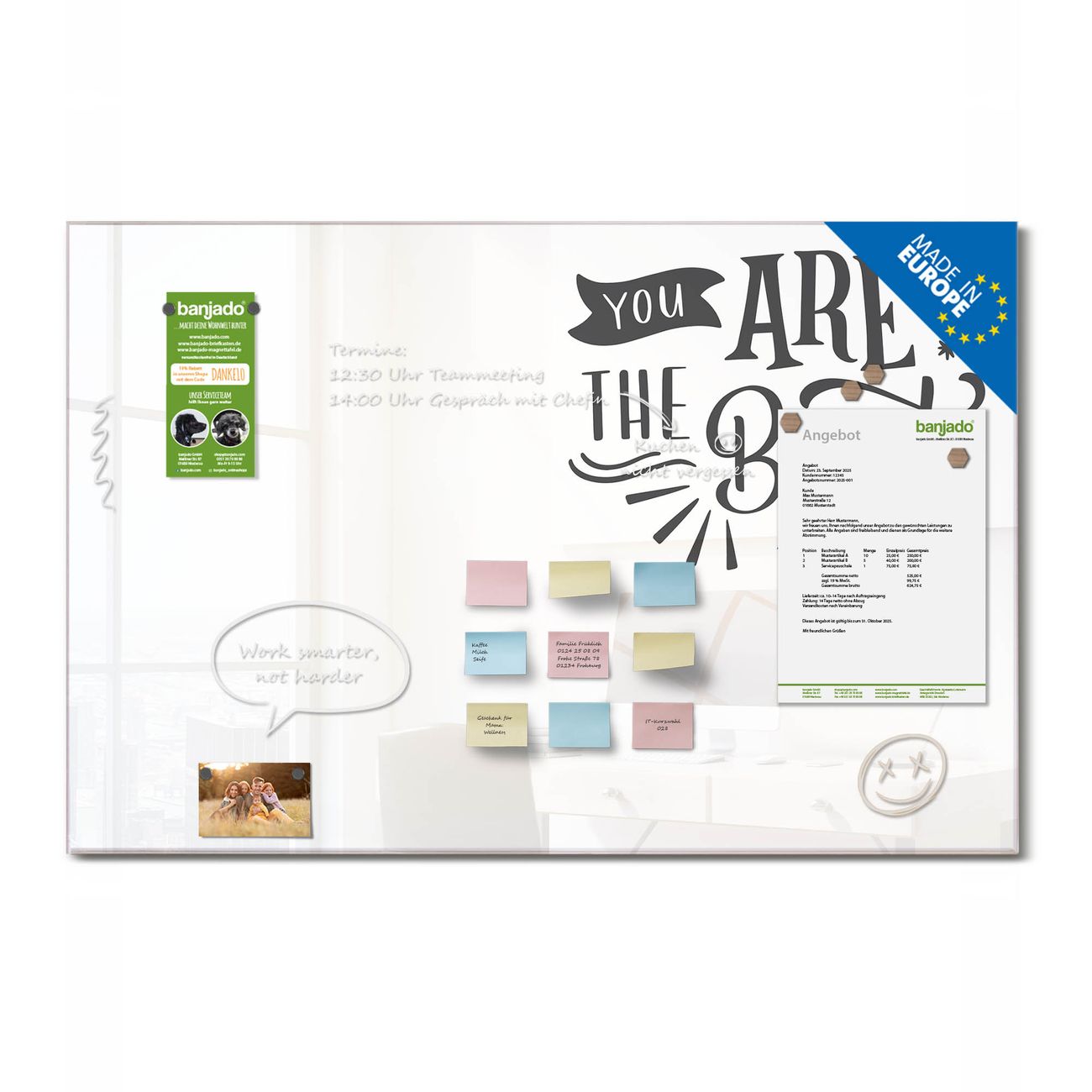 Bitte beachten Sie, dass ausschliessliche spezielle Magnete an der Glastafel haften. Wir empfehlen banjado Neodym Magnete, diese sind durch uns auf Wirksamkeit geprüft.
