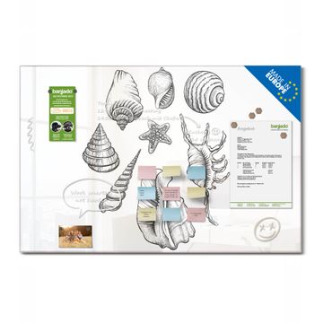 Material: 4mm Sicherheitsglas mit Metallrückwand Eigenschaften: beschreibbar, magnetisch, kratzfest Maße: 120x80x0,6cm, 14,40kg schwer Motiv Nummer 13075 Muschel 10 Zubehör: inklusive 4 Neodym-Magnete