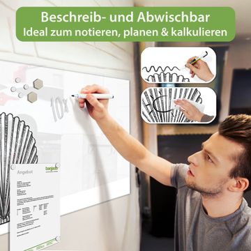 Auf der glatten Glasoberfläche lassen sich Termine, Rezepte oder Notizen ganz einfach mit Kreidestiften festhalten und rückstandslos entfernen. Starke Neodym-Magnete halten Ihre wichtigsten Erinnerungen sicher an Ort und Stelle. So entsteht Ihre ganz persönliche Ideenwand - jeden Tag neu.