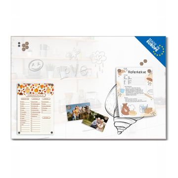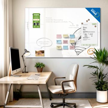 Auf der glatten Glasoberfläche lassen sich Termine, Rezepte oder Notizen ganz einfach mit Kreidestiften festhalten und rückstandslos entfernen. Starke Neodym-Magnete halten Ihre wichtigsten Erinnerungen sicher an Ort und Stelle. So entsteht Ihre ganz persönliche Ideenwand - jeden Tag neu.