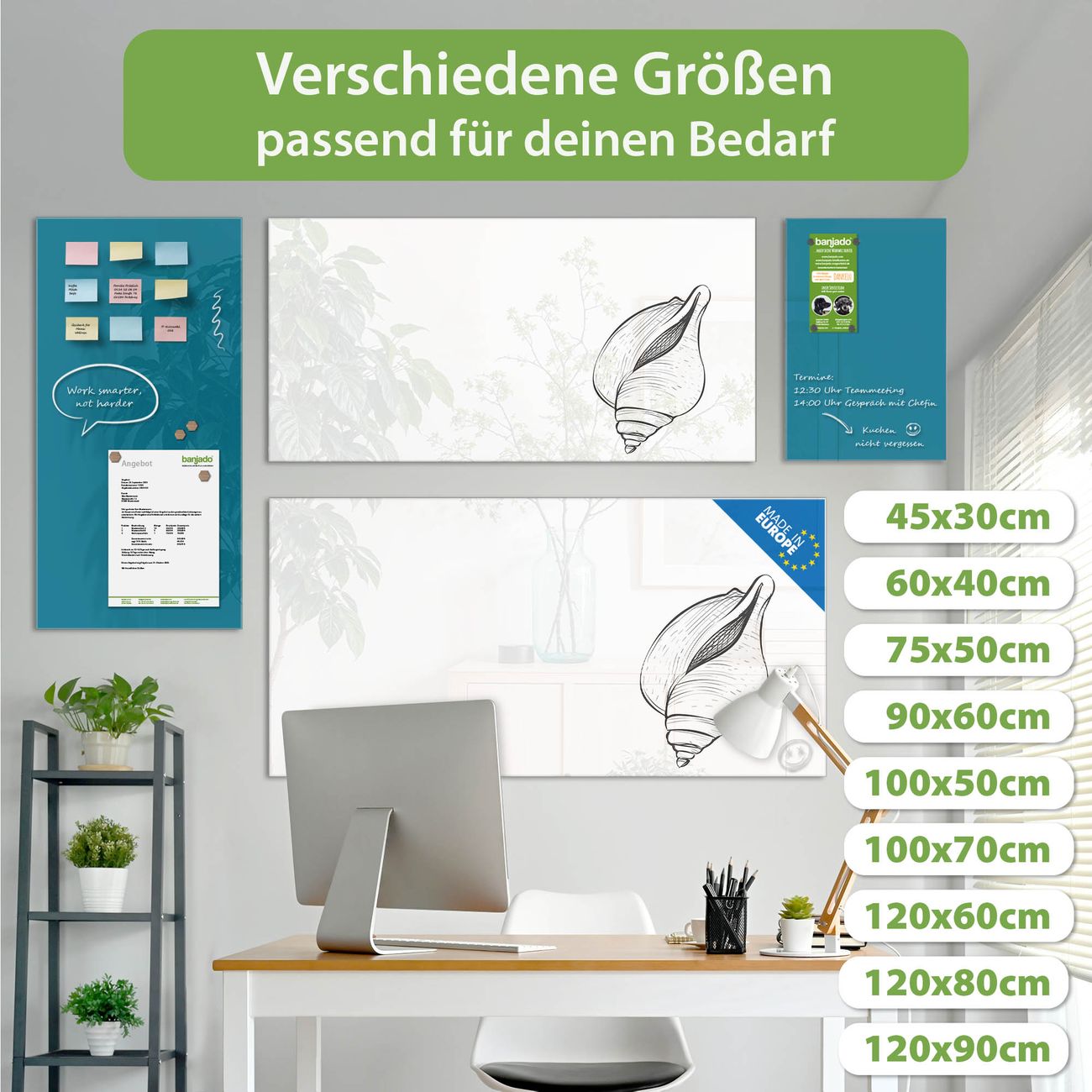 Jede Glas Magnettafel wird in unserer Werkstatt von Hand gefertigt und sorgfältig geprüft. So erhalten Sie ein echtes Qualitätsprodukt, das Funktion und Ästhetik perfekt vereint.?? Warum banjado?