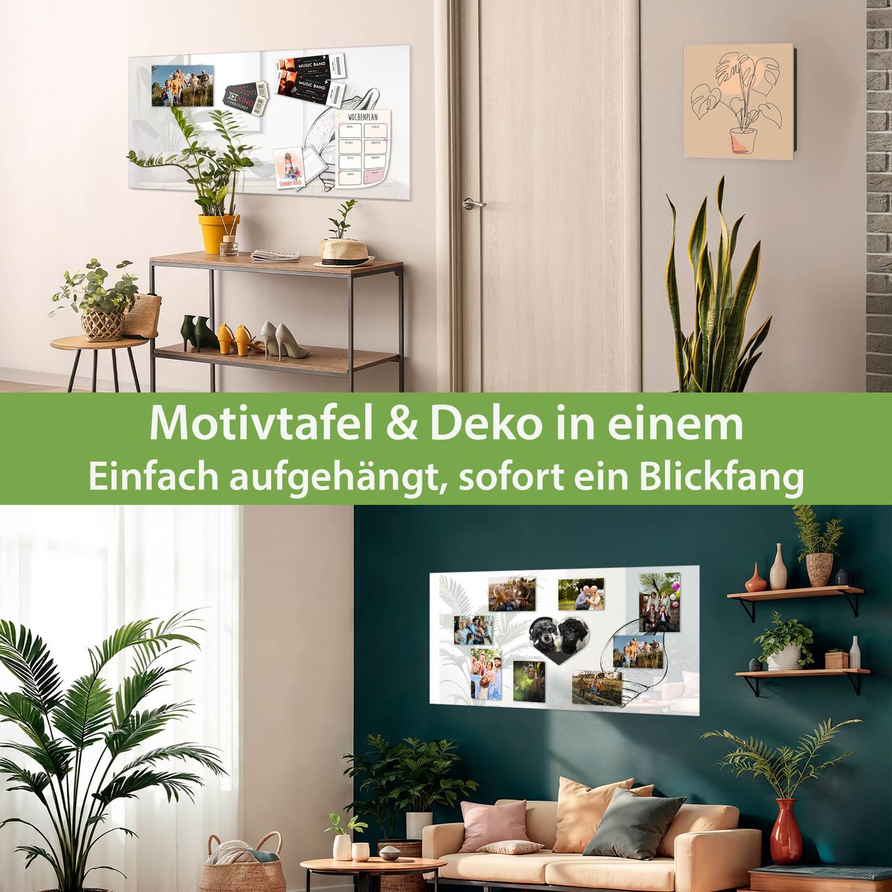 Dank der flachen Bauweise wirkt die Magnetwand fast schwebend an der Wand. Sie können sie mit Montagekleber elegant befestigen oder mit einem passenden Set klassisch verschrauben - beides sorgt für sicheren Halt und eine dezente Optik.