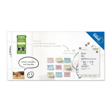 Auf der glatten Glasoberfläche lassen sich Termine, Rezepte oder Notizen ganz einfach mit Kreidestiften festhalten und rückstandslos entfernen. Starke Neodym-Magnete halten Ihre wichtigsten Erinnerungen sicher an Ort und Stelle. So entsteht Ihre ganz persönliche Ideenwand - jeden Tag neu.