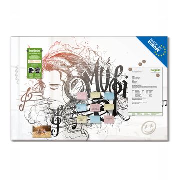 Material: 4mm Sicherheitsglas mit Metallrückwand Eigenschaften: beschreibbar, magnetisch, kratzfest Maße: 120x80x0,6cm, 14,40kg schwer Motiv Nummer 13319 Musikalische Linienkunst Zubehör: inklusive 4 Neodym-Magnete