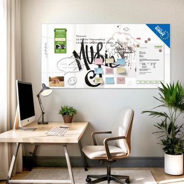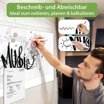 Auf der glatten Glasoberfläche lassen sich Termine, Rezepte oder Notizen ganz einfach mit Kreidestiften festhalten und rückstandslos entfernen. Starke Neodym-Magnete halten Ihre wichtigsten Erinnerungen sicher an Ort und Stelle. So entsteht Ihre ganz persönliche Ideenwand - jeden Tag neu.