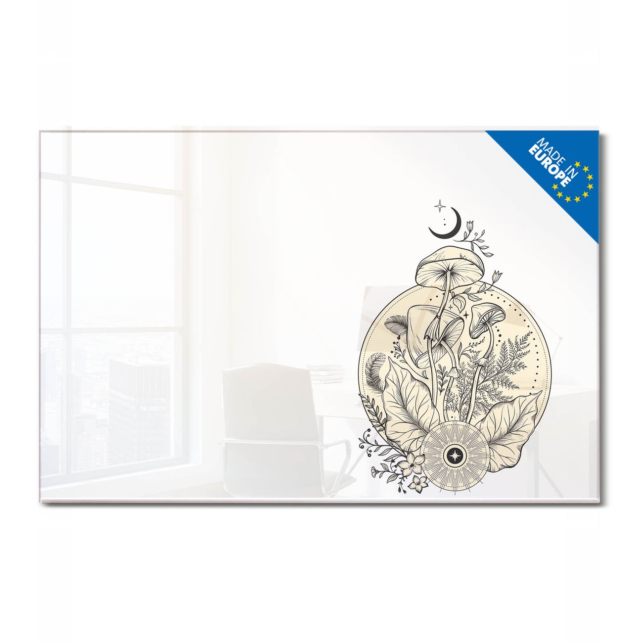 Ein Stück Design, das Ihren Alltag organisiert. Schreiben, heften, inspirieren - alles an einem Ort. Qualität, die man spürt. Montage leicht gemacht. Handwerk mit Herz - veredelt in Sachsen. Einzigartiges Design mit Motiv Motiv Mystische Natur Beschreibbare Glasoberfläche, leicht zu reinigen Starke Magnetkraft durch Stahlrückwand Inklusive 4 Neodym-Magneten Flexible Montageoptionen Handveredelt in Sachsen - Qualität, die bleibt